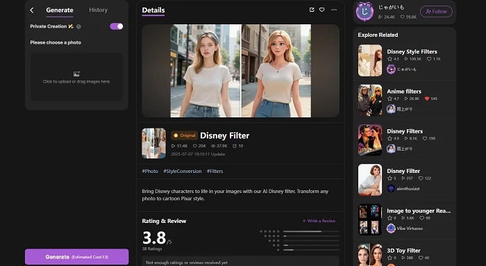 SeaArt ist ein kostenloses KI-Tool mit umfassenden Funktionen und einer warmherzigen Community. SeaArt AI bietet eine hervorragende plattformübergreifende und mehrsprachige Unterstützung, die es dir ermöglicht, App oder Webseite einfach zu nutzen. Du kannst die KI-Filter-Funktion von SeaArt AI kostenlos verwenden. Du brauchst keine professionellen Fähigkeiten, um qualitativ hochwertige Bilder zu erstellen. Außerdem unterstützt es den kostenlosen Download ohne Wasserzeichen. Hier hast du eine Vielzahl von Cartoon-Stilen zur Auswahl, darunter klassische japanische Cartoons, 3D-Cartoons, amerikanische Comics und mehr. Ein Foto in einen Cartoon zu verwandeln, ist nur einen Klick entfernt.