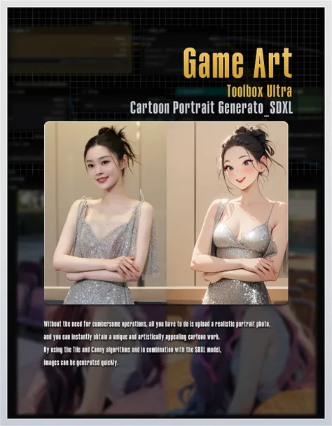 Es sind keine umständlichen Operationen erforderlich. müssen Sie nur ein realistisches Portraitfoto hochladen, und Sie können sofort einzigartige und künstlerische Cartoon-Werke erstellen. Mit den Algorithmen Tile und Canny und in Verbindung mit dem SDXL-Modell, Bilder können schnell generiert werden.
