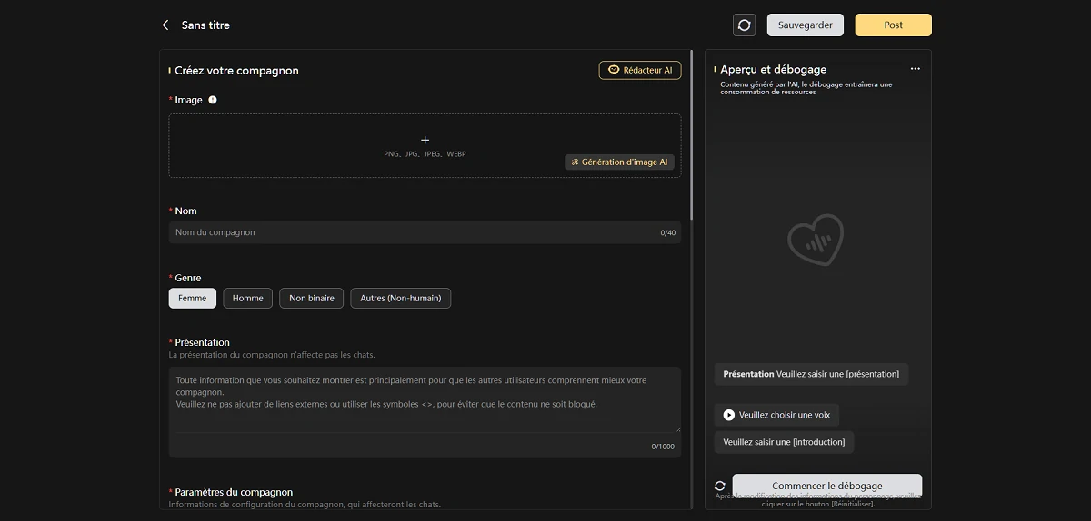 • De meilleurs outils de contrôle : édition/suppression de messages plus simple, configuration de personnages/personas plus claire et champs plus adaptés aux créateurs.