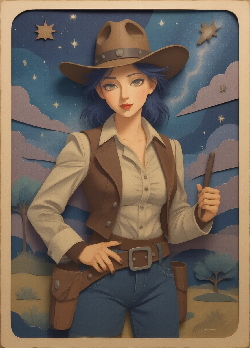 Trasforma il ritratto caricato in un'illustrazione di un libro per bambini a strati di ritagli di carta con ombre di ritagli di carta sovrapposte e forme giocose.