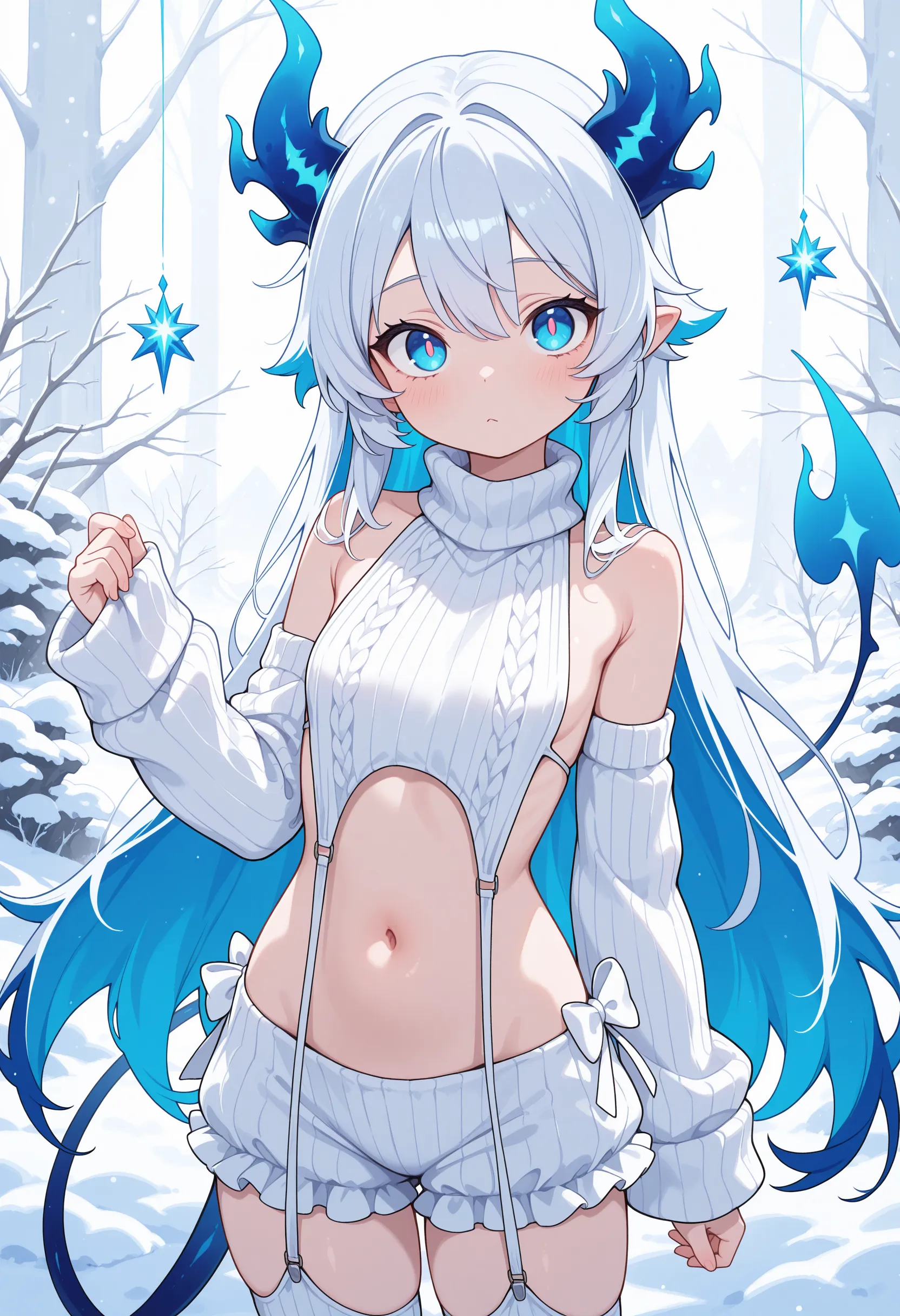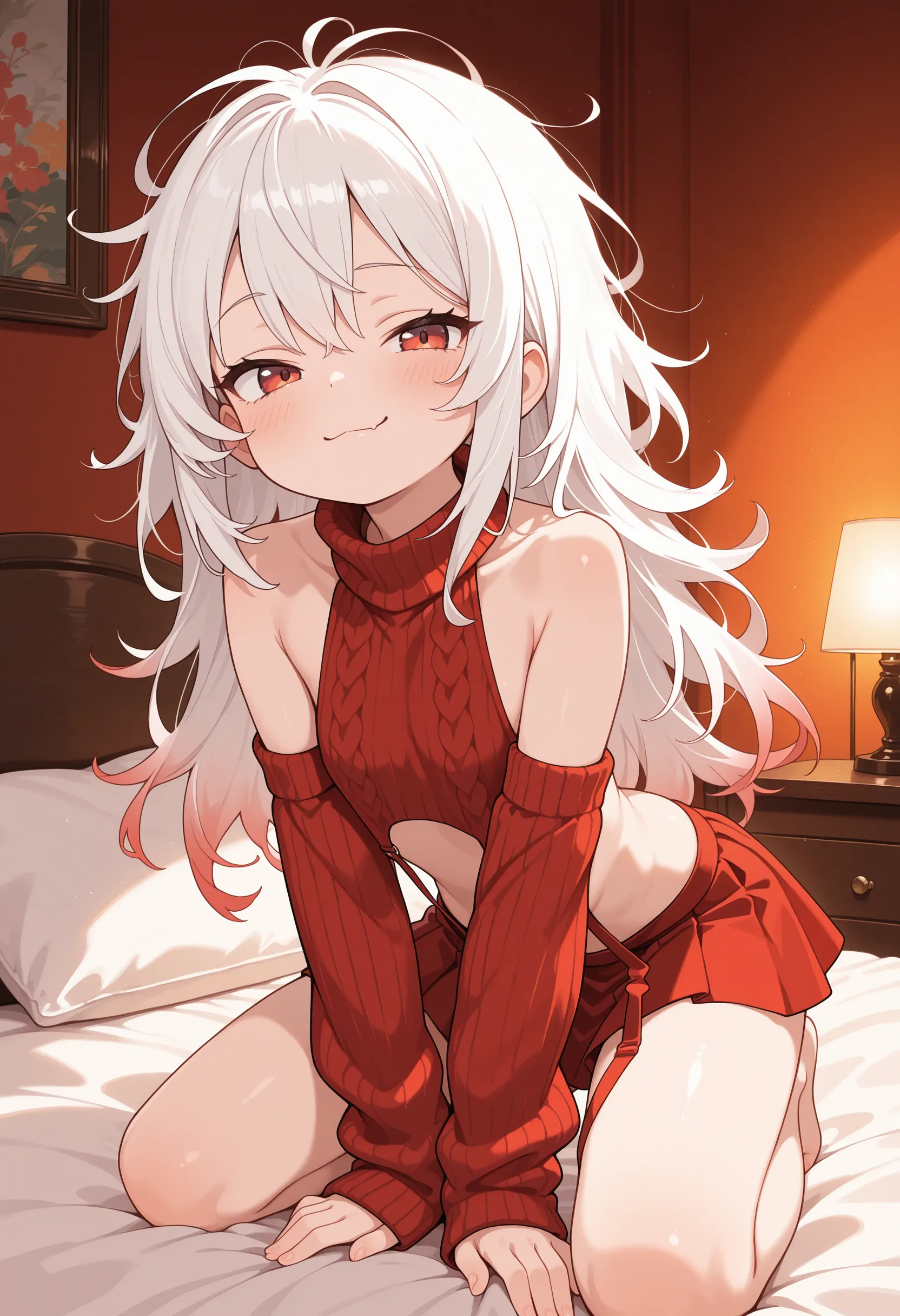 파괴자 스웨터를 입은 애니메이션 소녀를 생성하세요.