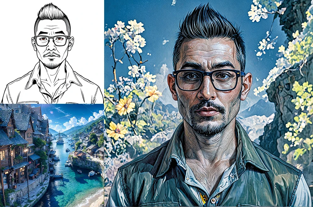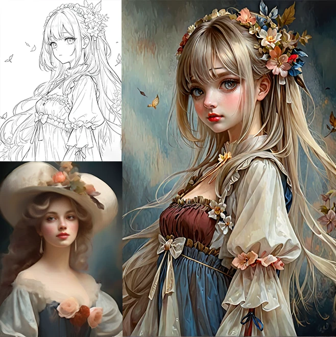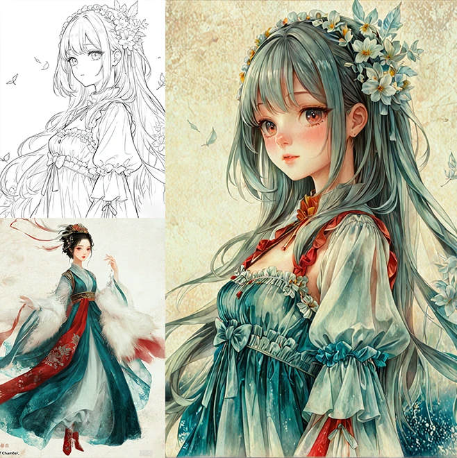 Upload a line drawing and a color picture to complete the line drawing and coloring, and the style is consistent with the reference picture อัปโหลดรูปเส้นโครงและรูประบายสี,สามารถทำเส้นโครงและระบายสีได้,และสไตล์สอดคล้องกับรูปอ้างอิง