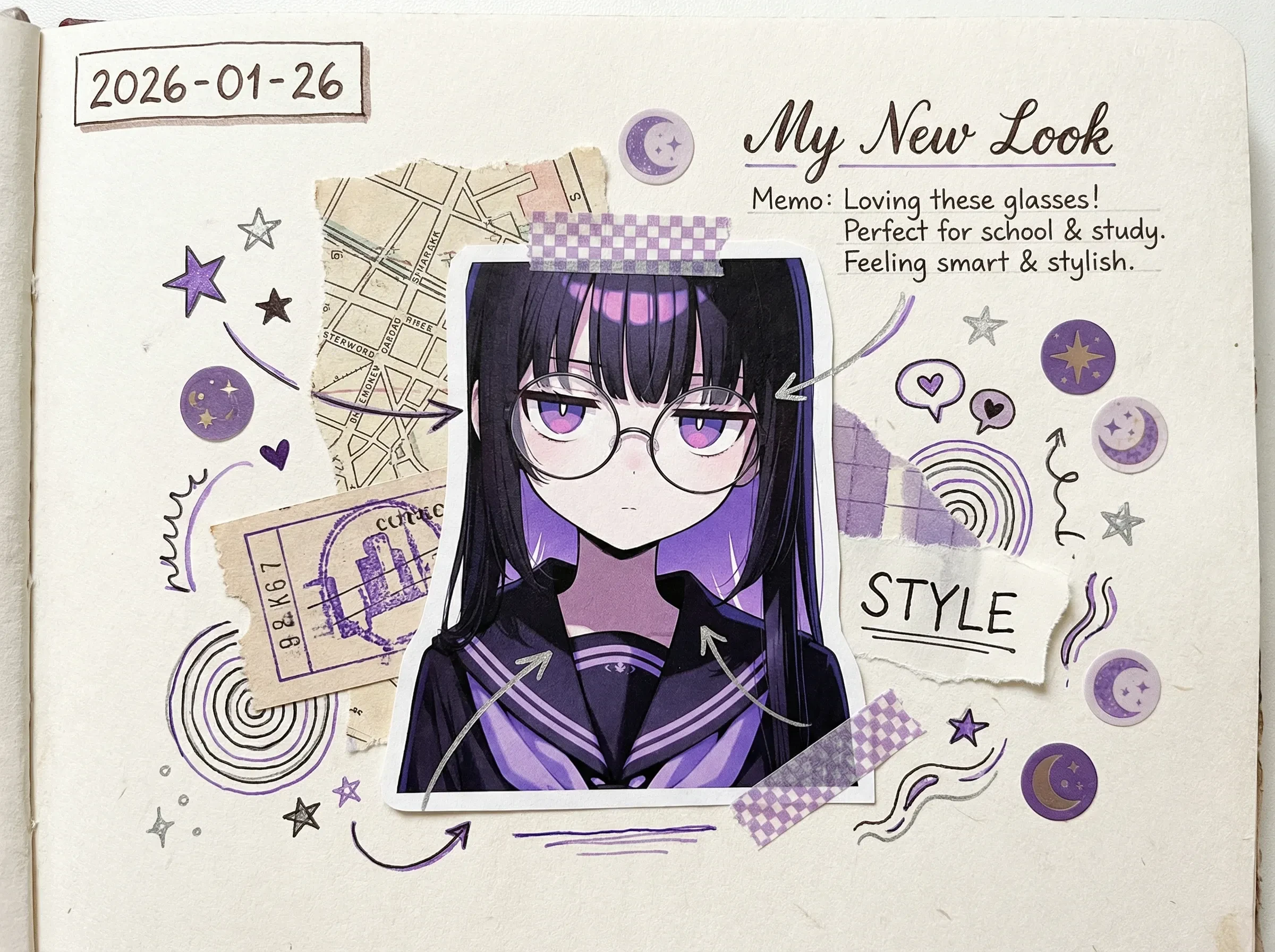 Bir günlüğe yapıştırılmış gibi görünen bir resim oluşturmak için 3 resim seçin