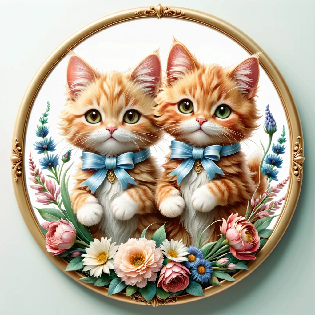 Cat 2 cats with flowers Can be made with your favorite fluffy animals