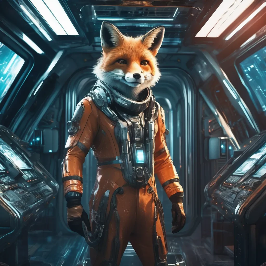Among the twinkling stars and bluish-purple nebulae, a fox floats weightless in the vast expanse of the cosmos. Its fur shimmered, as if absorbing the light of the galaxy, with a long tail that shone like the trail of a comet. His golden glowing eyes reflected the secrets of the universe, filled with wisdom that had crossed thousands of planets.