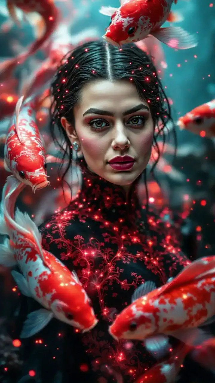 You Surrounded By Red And White Koi Fishes🐠🌊