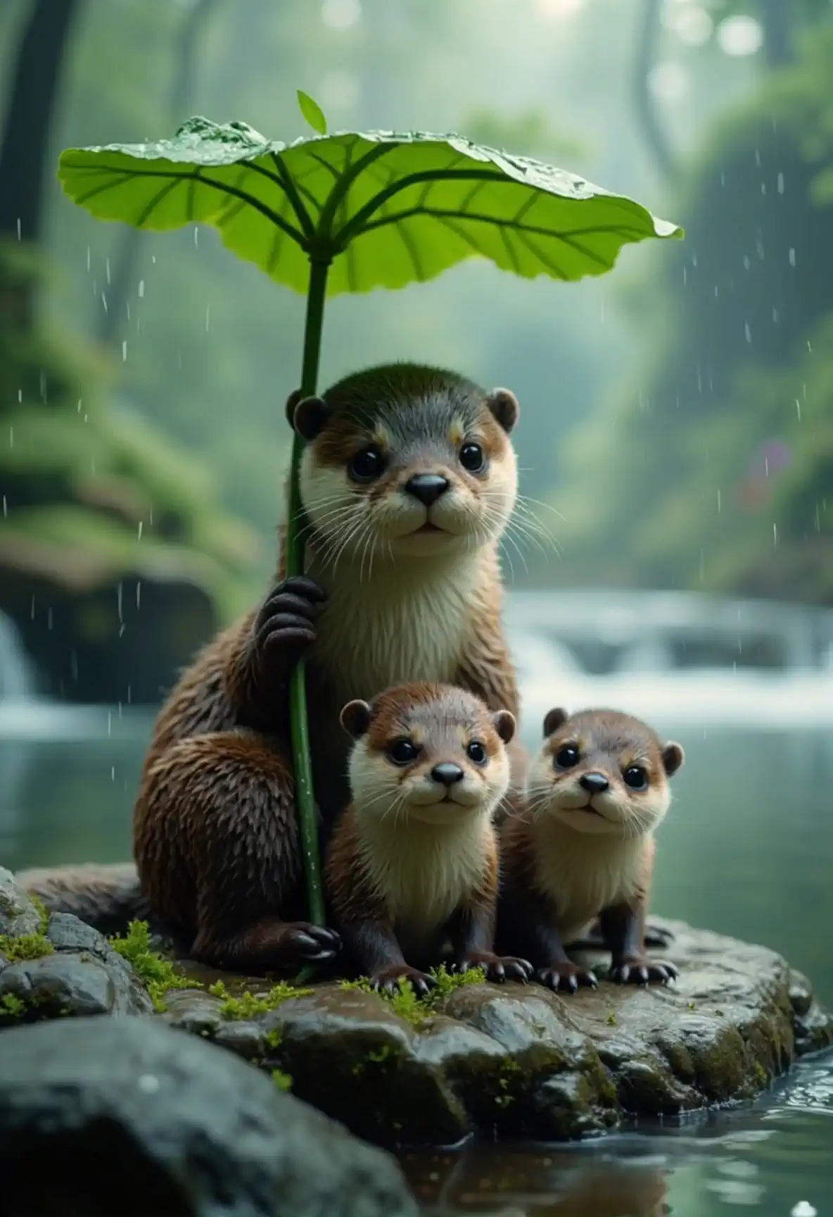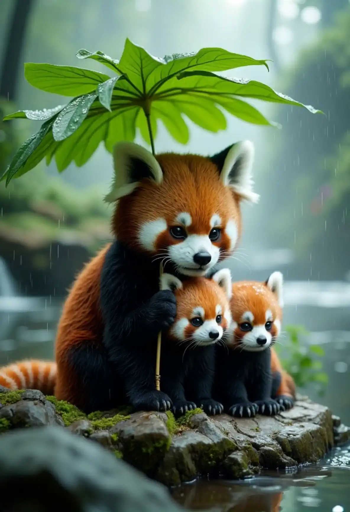 Rescue and Make your favourite animals with their cubs hide from rain under a leafy umbrealla.