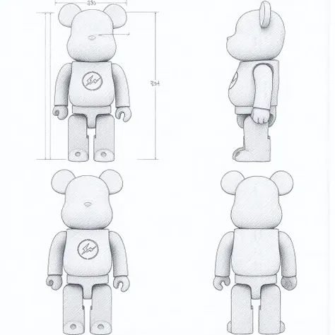 Upload a single front-view anime character — ✨ Three-view Sketch filter generates detailed front, side, and back hand-drawn sketches with precise dimension annotations.