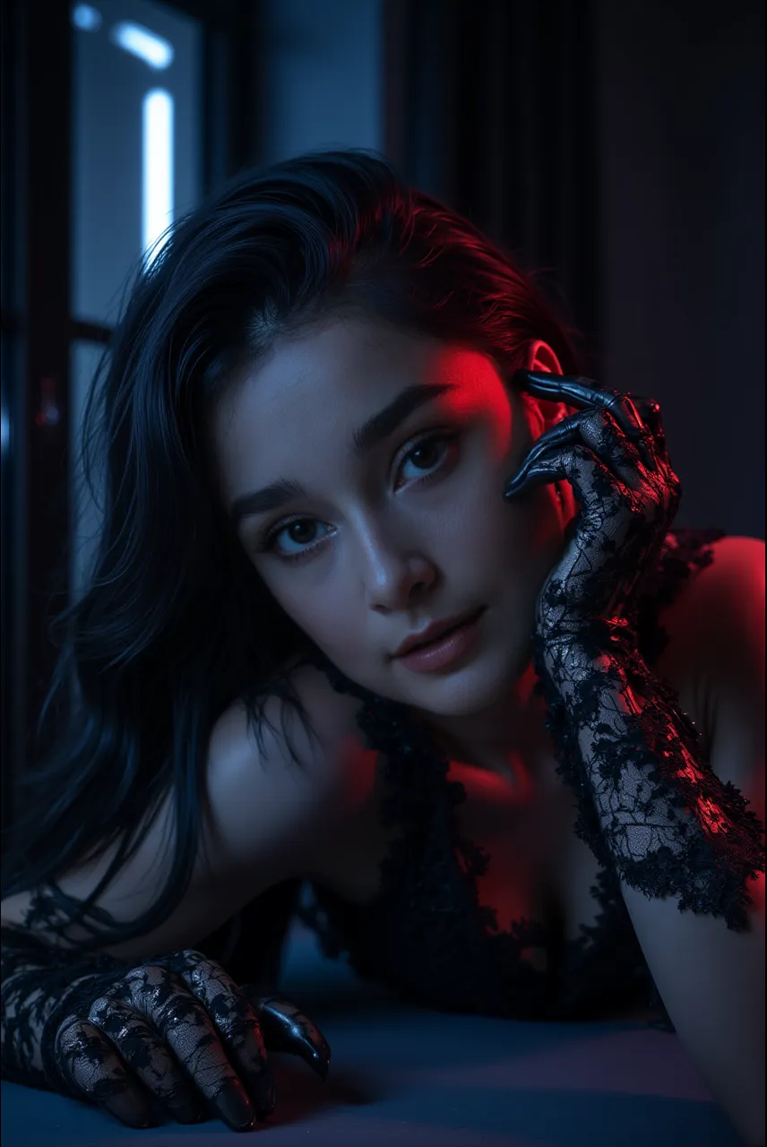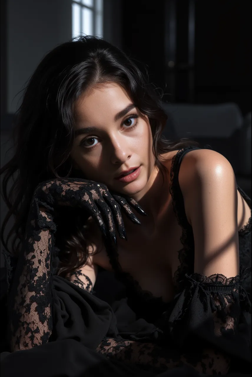 Create your own custom photo of a beautiful woman with the light shining on her face with just one click。