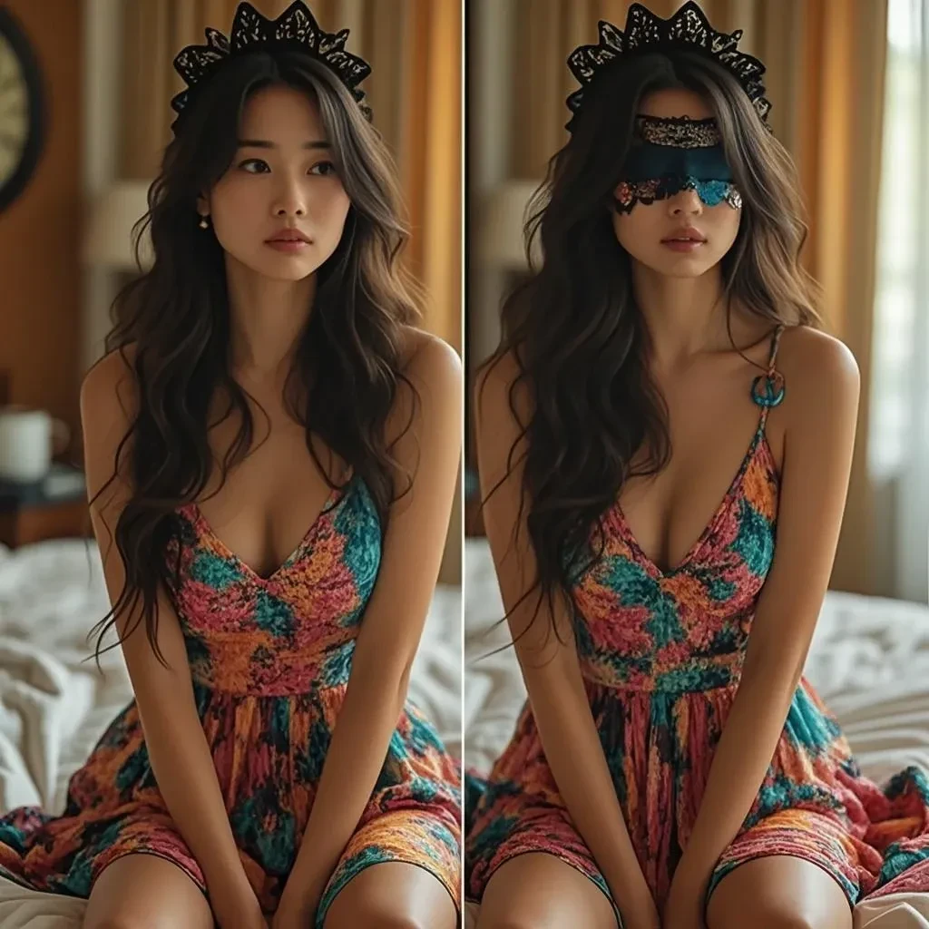 上传美女让她在眼睛上穿黑色蕾丝