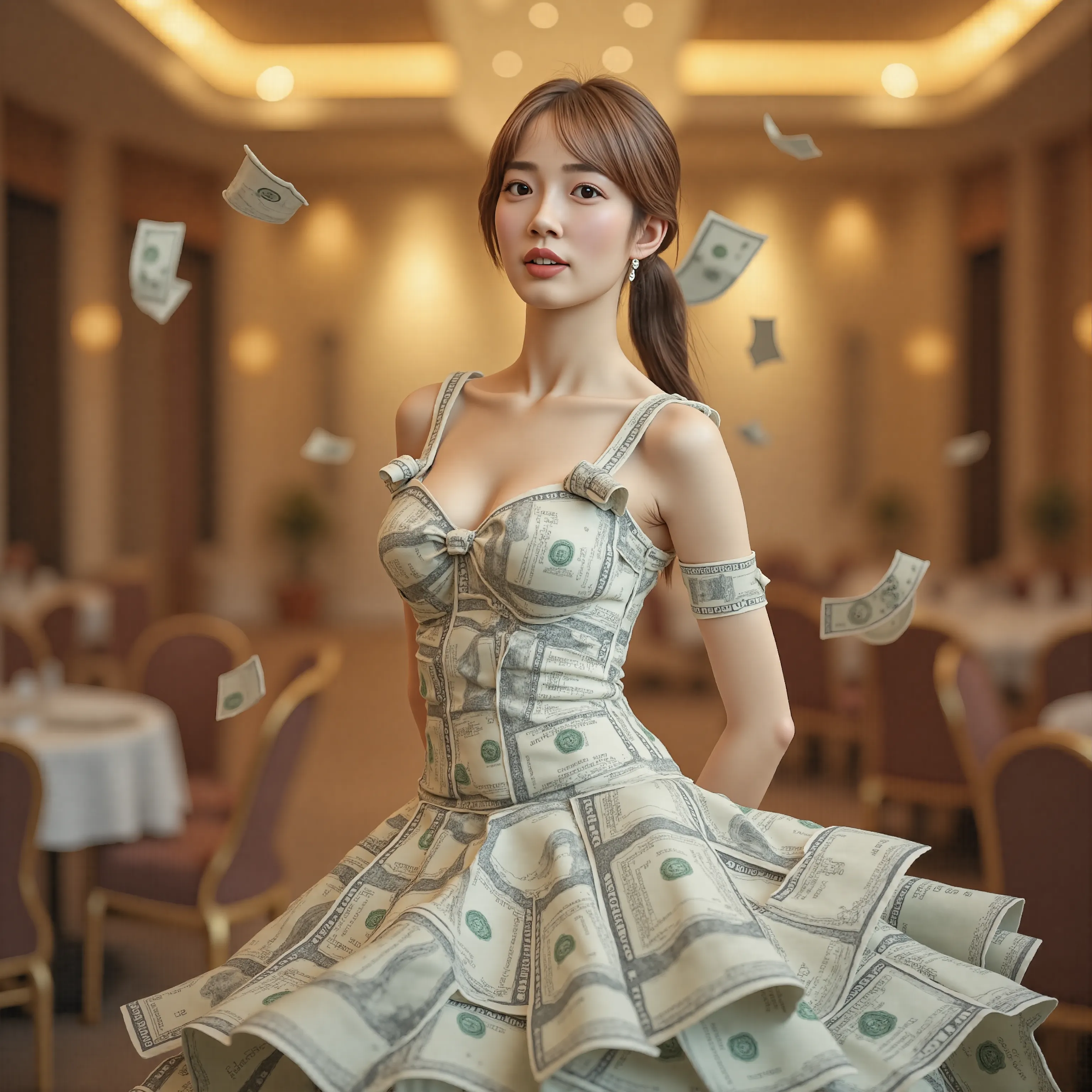 上傳臉部參考圖片,生成穿着美元的写真照片